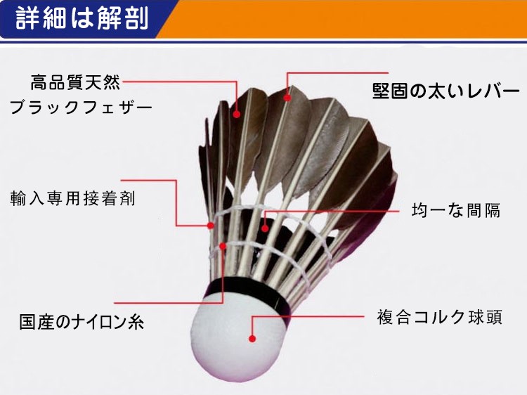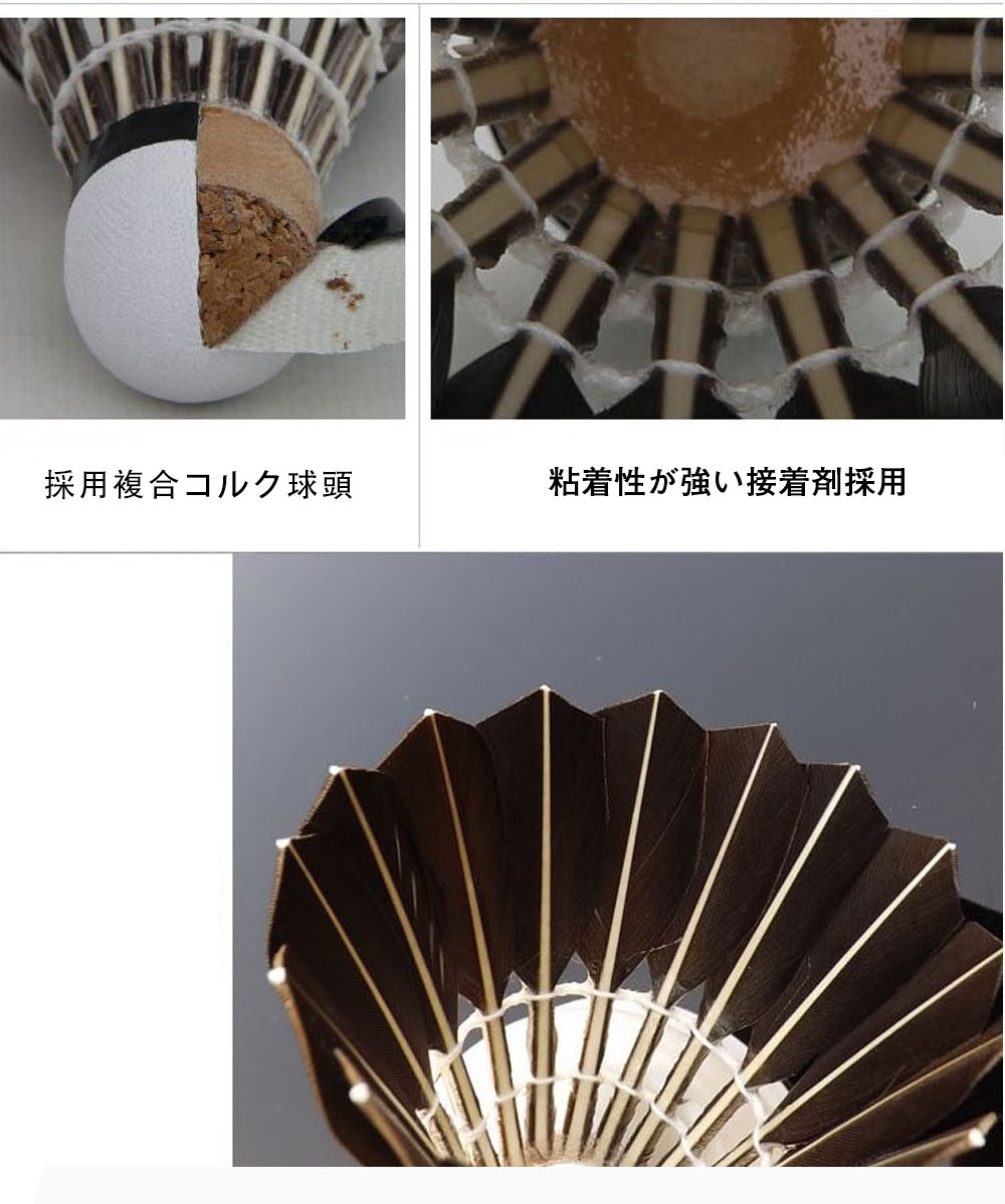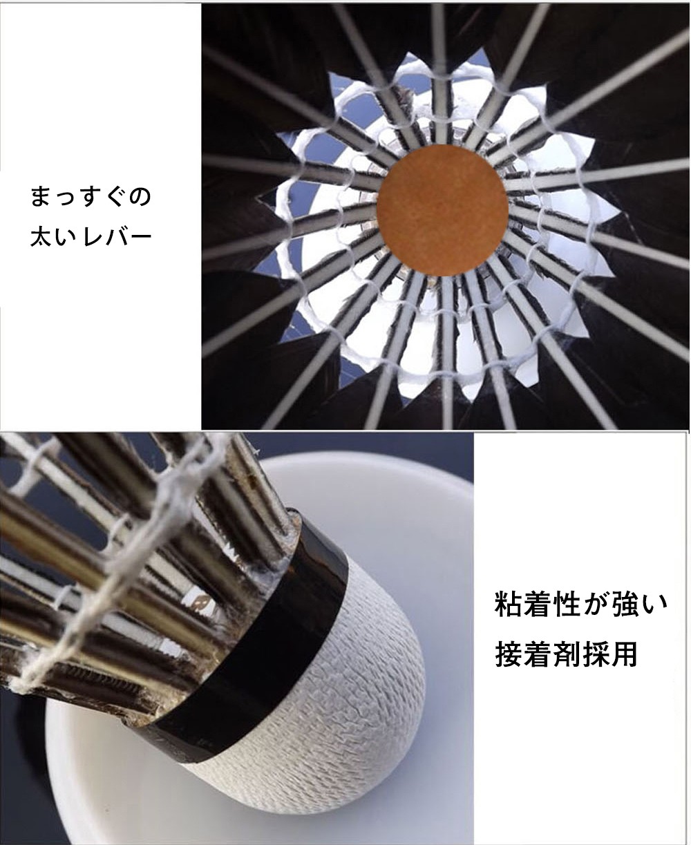 ガチョウ羽根はアヒル羽根より耐久性に優れており、1ダース(12個入り)でコストパフォーマンスがよいです♪【こんな方にオススメ】良いシャトルなのでとにかくたくさん練習したい方に!シャトルを打つ感覚を身付ける最初のシャトルとして!基礎打ちやノック練習に最適です♪【数量】1ダース(12個入り)