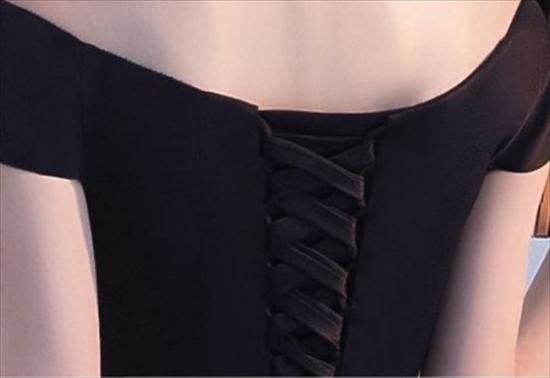 ミモレ丈のフィッシュテール ブラックワンピース。