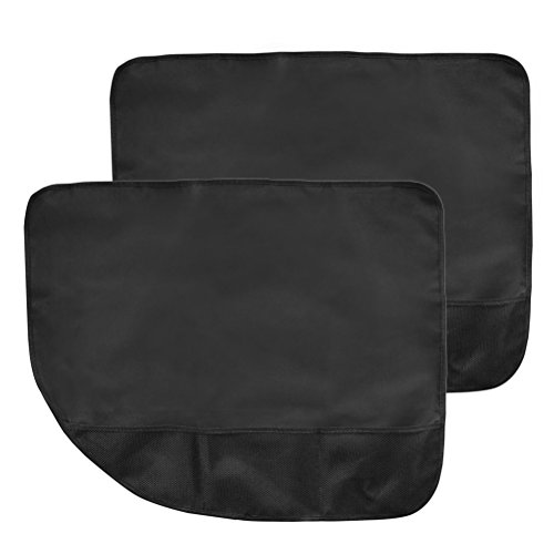 -. Feature : 【Easily Install】 Pet car door cover with two ways to install,provide plastic inserts to the tabs between window and car door panel or use the sticky back velcro tapes,makes them a breeze to put in and take down as needed / 【Excellent Quality】 Made of PVC free,washable polyester materials,in the pet car door cover's waterproof side towards the door and has a harsh nylon surface,good protects your fabric or even leather in your vehicles / 【Easy to Clean up】 Whole pet car door cover are easy to clean off with a damp cloth or machine wash,also can brush off the dirt once it is dried,protect scratching and drooling up your car doors / 【Stylish Functions】 Screen behind driver/passenger seats always protect the backs of the seats from dog hair/dander/drool,the pet car door cover prevent dogs from flying forward in an accident or hitting you in the head / 【New Design】 With in storage mesh pockets easily for snacks and other travel essentials,one pet car door for two ways use,provide good protection of the door all the time