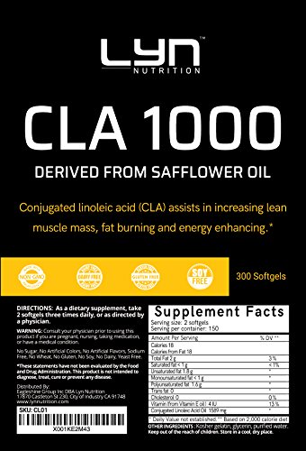 -. Title : Premium CLA 1000 mg, 300 Softgels ,Conjugated Linoleic Acid, Natural Weight Loss Exercise Enhancement, Increase Lean Muscle Mass, Non-Stimulating, Non-GMO, Safflower Oil
