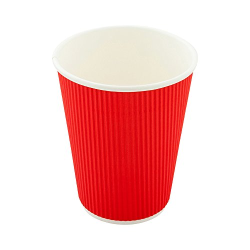 25-CT Disposable Red 12-OZ Hot Beverage Cups with Ripple Wall Design: No Need for Sleeves – Perfect for Cafes or Home Use – Recyclable Paper – Insulated – Wholesale Takeout Coffee Cup