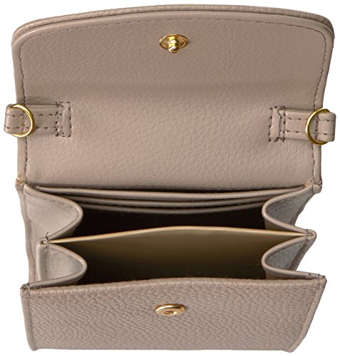 Studio : Buxton Publisher : Buxton Binding : Apparel Product Description Pebble Textured Faux Leather with Gold tone Logo Plaque/Hardware Pebble Collection Cell Phone Crossbody features an outside back slip pocket, snap closure flap opens to 2 gusseted pockets, 2 credit card pockets 1 slip pocket and has a removable adjustable crossbody strap. 0