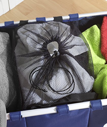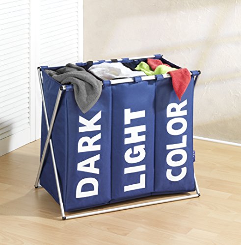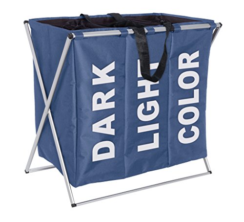 -. Title : WENKO 3440023100 Laundry collector Trio Blue - 3 laundry compartments, capacity 34.34 gal, Polyester, 24.8 x 22.4 x 15 inch, Blue