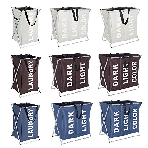 -. Feature : With three compartments for optimal laundry separation and pre-sorting with the lettering elements "DARK", "LIGHT" and "color" / Easy transport to the washing machine and mesh cover with drawstring closure / Made of durable polyester with a robust aluminum frame, removable, foldable to save space / Capacity: 3 x 34.34 gal (130 litres) / Dimensions (W x H x D): 24.80 x 22.44 x 14.96 in