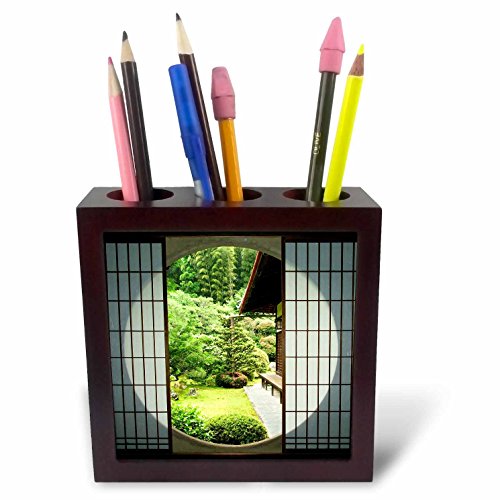 3dRose ph_76381_1 Round Window, Zen Garden, Kyoto, Japan-AS15 STE0102-Shin Terada-Tile Pen Holder, 5-Inch