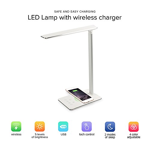 Ytech Wireless Charging, Led Desk Lamp(2 in 1)Wireless Charger for iPhone 7 7Plus 6 6S (for Apple devices need YTech QI Receiver) Samsung Galaxy S8+ Plus S7 Edge S6 Edge, USB Charging Port