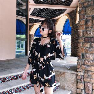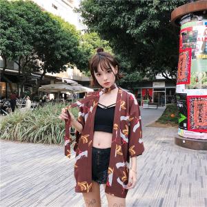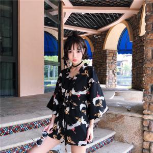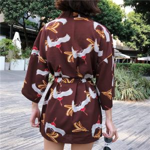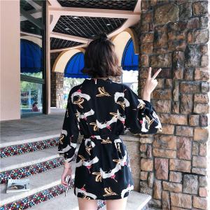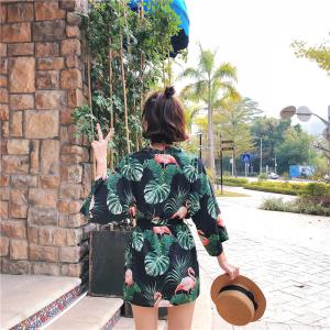 柄羽織り ボタニカル柄 フラミンゴ柄 大柄 ガウン ウエストマーク リボン 和テイスト 着物 カーディガン フレア袖