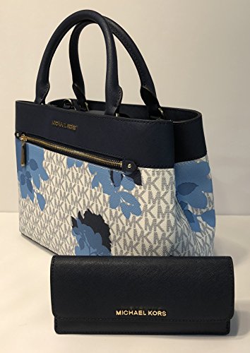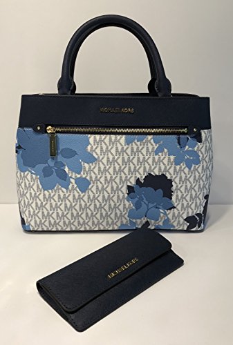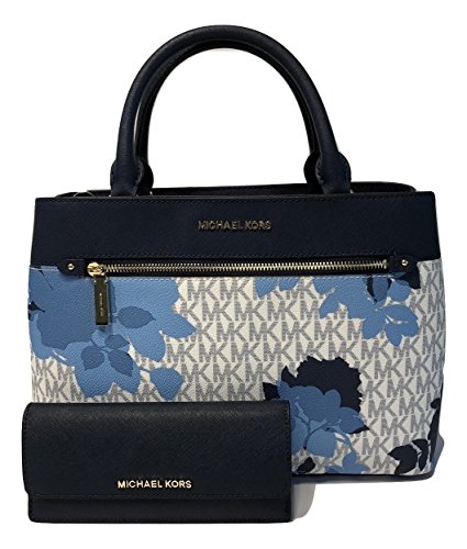 Michael Kors MICHAEL Michael Kors Hailee MD Satchel bundled with Jet Set Travel Flat Wallet (Signature MK Navy Floral)