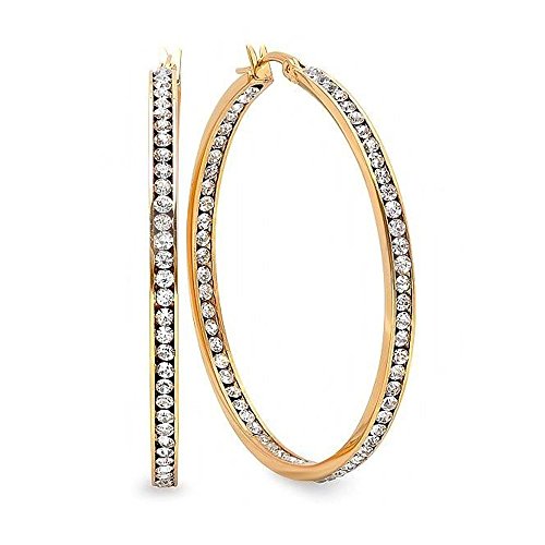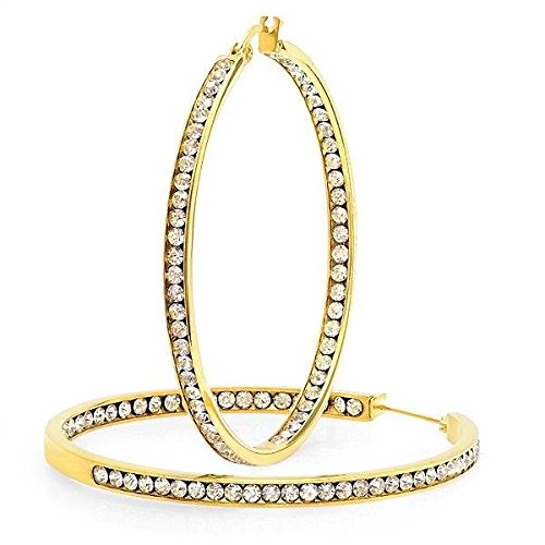-. Binding : Jewelry -. Brand : Gem Stone King -. Color : Yellow Gold -. Department : womens -. Feature : Stainless Steel / Cubic Zirconia / 2 inch X 2 Inch = 50mm X50mm / Gemstones may have been treated to improve their appearance or durability and may require special care. -. NumberOfItems : 1 -. PackageQuantity : 1 -. ProductGroup : Jewelry -. ProductTypeName : FASHIONEARRING -. Title : 2 Inch Stainless Steel Gold Plated High Shine Inside-Out Hoop Earrings With CZ