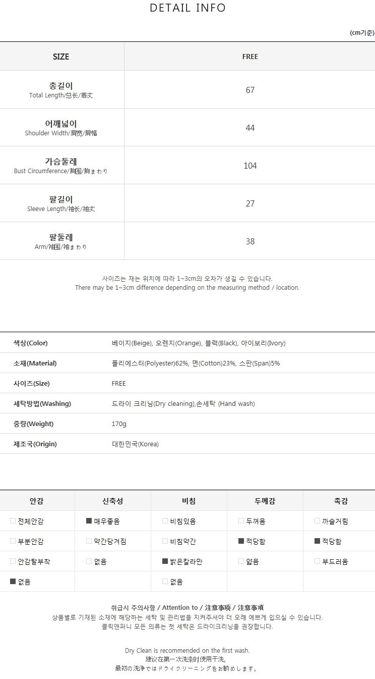 [ 모델 착용 : 아이보리 , FREE size ]