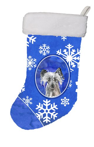Caroline's Treasures Chinese Crested Winter Snowflakes Christmas Stocking, 11 x 18", Mulitcolor