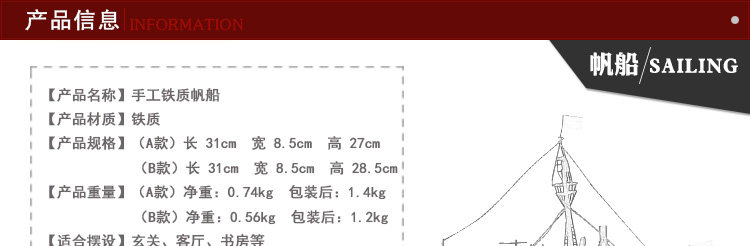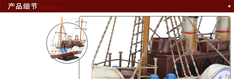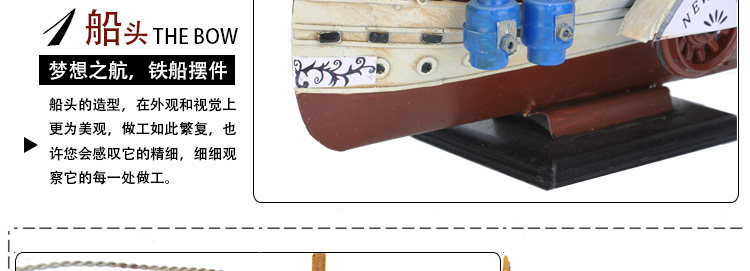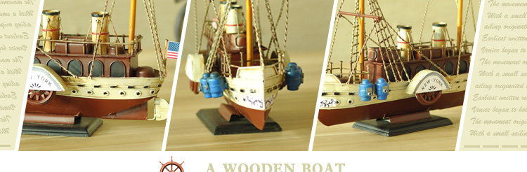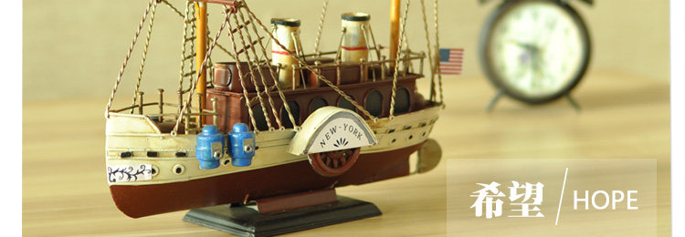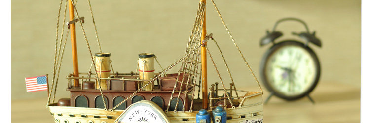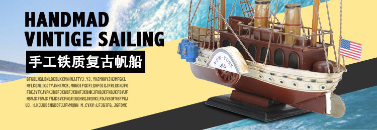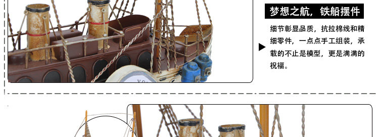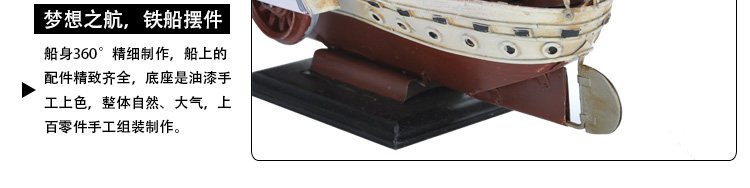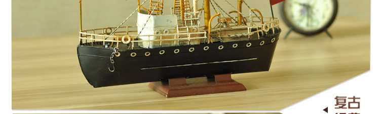 复古仿真做旧手工铁艺渔船模型摆件家居软装饰品电视柜工艺品摆设