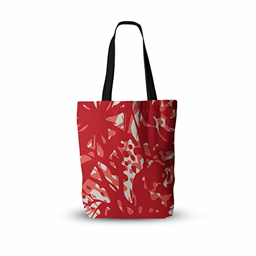 KESS InHouse Patternmuse "Inky Floral Poppy" Red Coral Painting Everything Tote Bag, 13" x 13", Multicolor