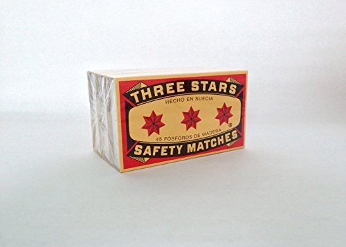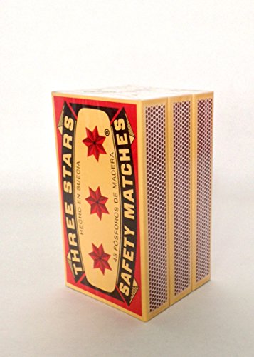Studio : Swedish Match Publisher : Swedish Match Binding : Kitchen Product Description Extra Long Three Stars Safety Matches. Comes with 3 boxes of 45 Matches per box. The measurement of the package of 3 is 4.25 L x 2.25H x 2.50 W. The length of the match is 3.75 inches. Perfect length for getting to the bottom of a candle jar. 0