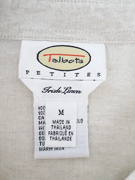 Ladies ブランドTalbots タルボット カラーアイボリー メール便不可 コンディション★★★ 素材リネン 表記サイズM 実寸サイズ 着丈 56 cm 身幅 50 cm 肩幅 41 cm 袖丈 20 cm ※ウエスト・ヒップ以外は平置き採寸