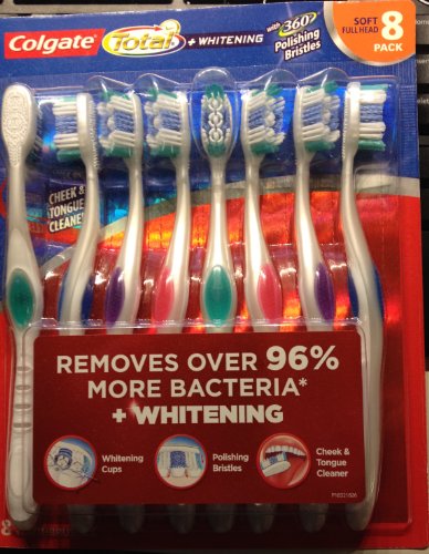 -. Title : Colgate Total + Whitening 8 Pack Full Head Toothbrushes