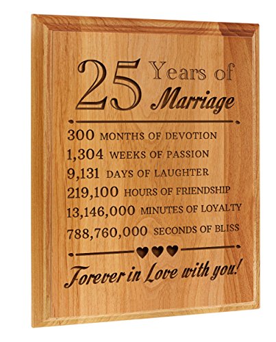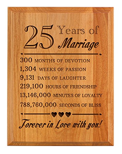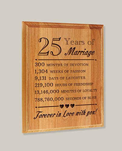Engraved wood plaques make great 25th wedding anniversary gifts for her, wedding anniversary gifts for him, or wedding anniversary gifts for the couple. Plaques are 25th anniversary gifts that last a lifetime.