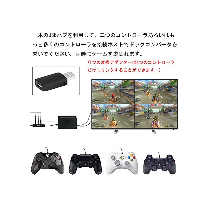 1책의USB허브를 이용하여두 개의 콘트롤러 혹은 더 많은 콘트롤러를 접속 호스트에 도크 콘버터를 연결해 하십시오.동시에 게임을 놀아집니다.