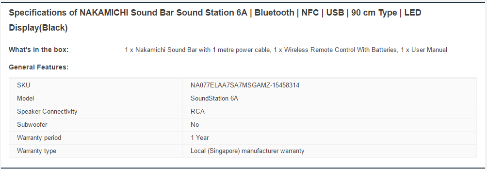 - Soundbar Dimension : 900 (W) x 57 (H) x 700mm