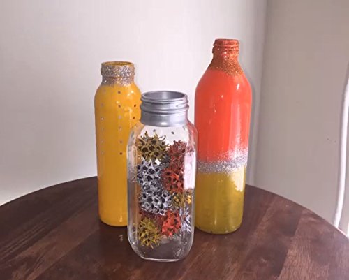 Yellow Orange and Silver 3 Piece Decorative Bottle Set (Yellow, Orange and Silver)