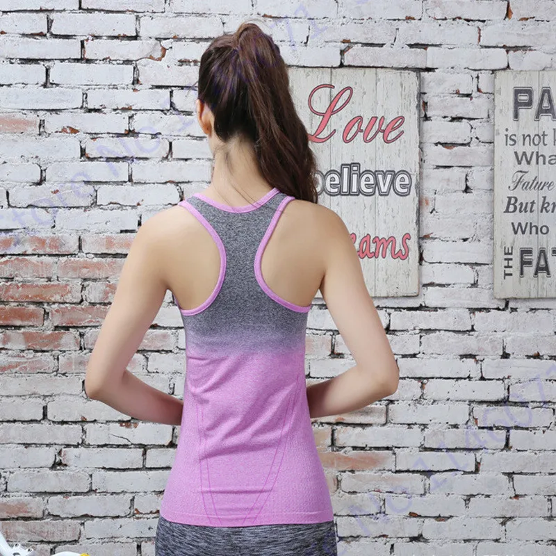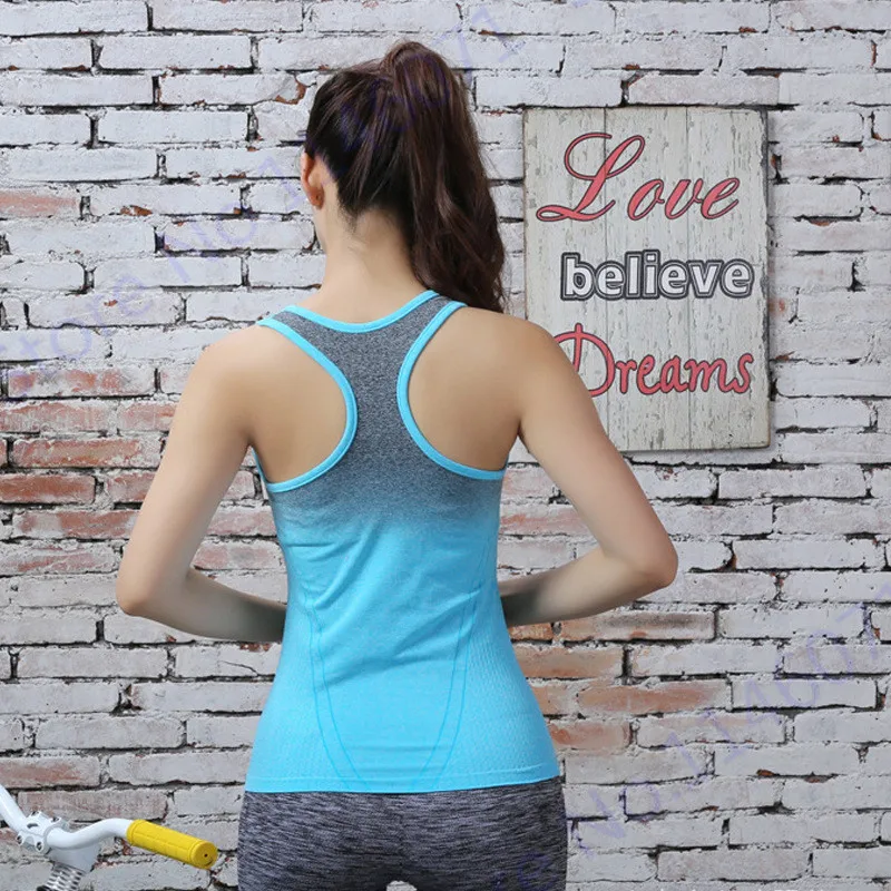 Features 5::Gradient Color Sleeveless Vests Summer Women Dry Quick Loose Tank Tops