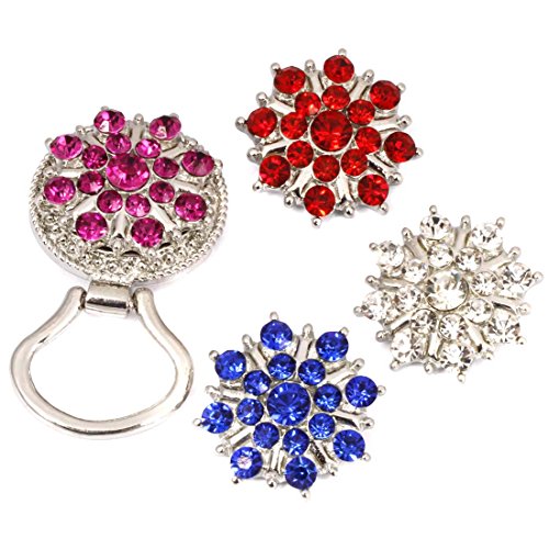-. Feature : Orante eyeglass holding brooch. / Stays in place on any clothing or purse thanks to a strong magnet button. / Material: Alloy metal, rhinestones, and faux pearls. / Size: 1.1 inch diameter with the eyeglass loop dropping an extra 0.75 inches. / Keep your glasses safe never looked so good.