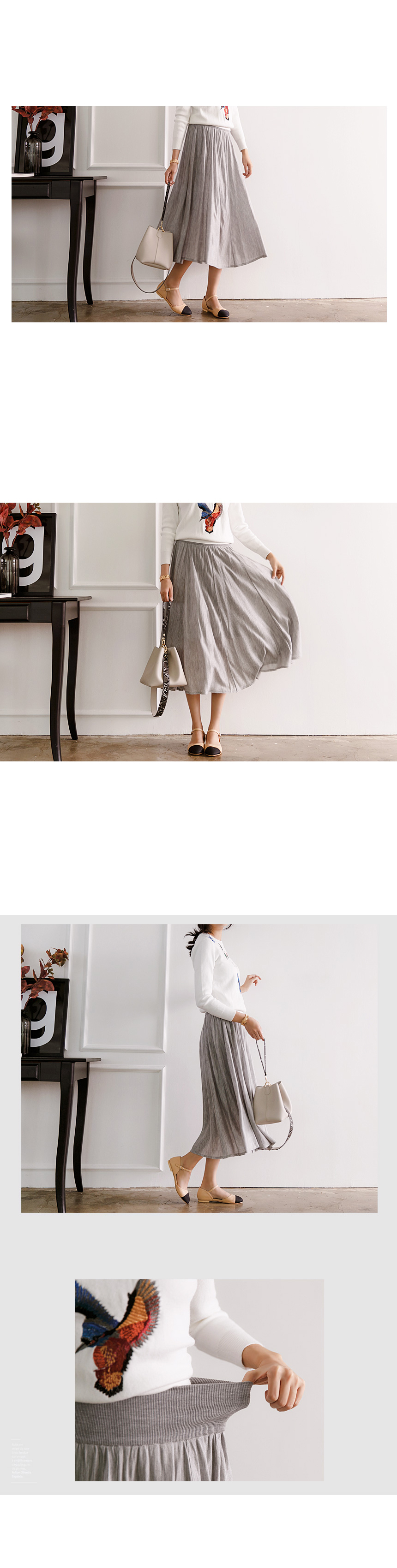 3. 잔잔하게 잡힌 셔링 라인으로 허리선에서 힙선까지 울퉁불퉁 요철없이