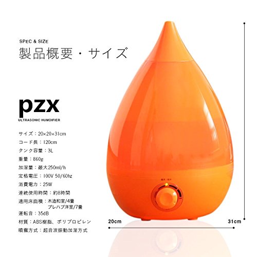 サイズ:20×20×31cm コード長:120cm タンク容量:3L 重量:860g 連続使用時間:約8時間 適用床面積:木造和室4畳/プレハブ洋室7畳