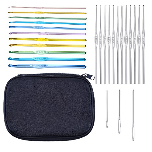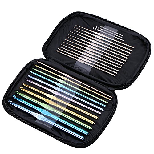 Outus 23 Pieces Colorful Crochet Hooks Set Size B/ 2.25 mm to K/ 6.5 mm and 3 Pieces Large Eye Blunt Needles with Bag