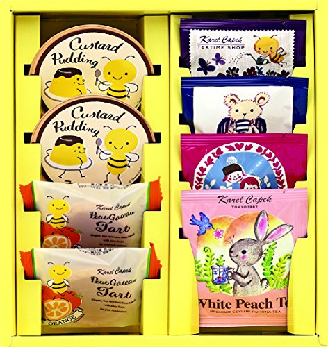原材料:〈プチガトータルト〉オレンジジャム、小麦粉、マーガリン、砂糖、卵、加糖アーモンドペースト、調整食用油脂(乳脂肪、植物油脂)、ショートニング、洋酒、果糖ぶどう糖液糖、食塩/ソルビトール、増粘剤(ペクチン)、酸味料、pH調整剤、香料、乳化剤、膨張剤、着色料(アントシアニン、カロチン)、(一部に小麦粉・卵・乳成分・オレンジ・大豆を含む)〈カスタードプリン〉牛乳、乳等を主要原料とする食品、砂糖、加糖卵黄、ゲル化剤(増粘多糖類)、香料、乳化剤、カゼインNa、リン酸塩(Na)、(原材料の一部に卵、大豆を含む)〈カラメルソース〉カラメルソース、砂糖、洋酒、増粘剤(ローカストビーンガム)、香料〈紅茶〉ブリティッシュモーニング(インド、スリランカ産)、ガーデンパーティー(スリランカ産)、ホワイトピーチティー(スリランカ産)、ガールズティー(スリランカ産)
