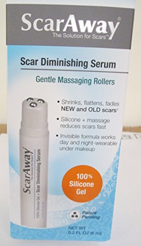 ScarAway 100% silicone gel serum with gentle massaging applicator is ideal for easy and convenient use on scars on any part of the body, even on scars on exposed or hard-to-treat areas such as: Face, Ears Neck, Scalp, Arms, Hands and Joint Areas. ScarAway is a concentrated 100% Silicone Gel Formulation for optimal results, and does not contain any inferior ingredients or fillers. Topical Silicone is clinically proven to help reduce and prevent scars. ScarAway works on newly healed woulds and visible older scars. Even scars that are years old and appear raised and discolored can become flatter, smoother, and less visible--closer to your skin's natural texture and color.Our new massaging applicator harnesses the power of not 1 but 2 Scar fighters, silicone AND massage, in one easy to use product.Feature
