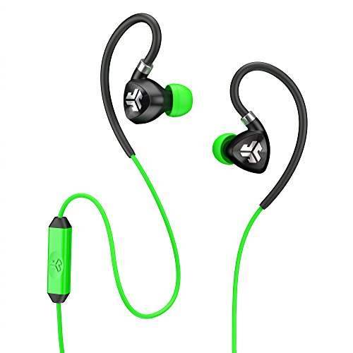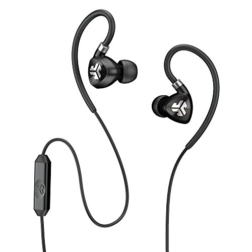 JLab Fit 2.0 Sport Earbuds, Sweatproof and Water Resistant with In-Wire Customizable Earhooks - Black