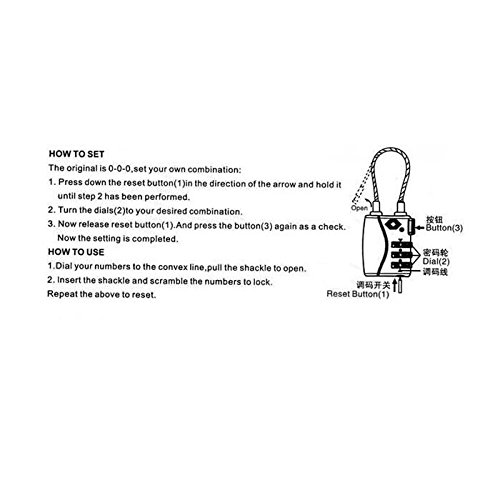 -. Feature : This item is recognized by the TSA (Transportation Security Administration) / Travel smart combination lock / Allows airport screeners to unlock inspect and relock bags, without damaging the lock / Very easy to use: Hassle-Free set your own combination, so you don't have to strle with opening the Lock, setting and changing the combination / Sested uses, lage, backpacks, bags, small cabinets, briefcases, computer bags