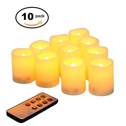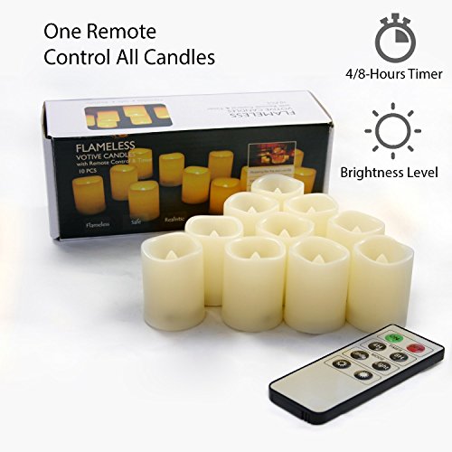 Candle Idea Battery Operated Flikering Flameless Votives, LED Electric Votive Candles with 8-key Remote Timer,Set of 10, 2'' H