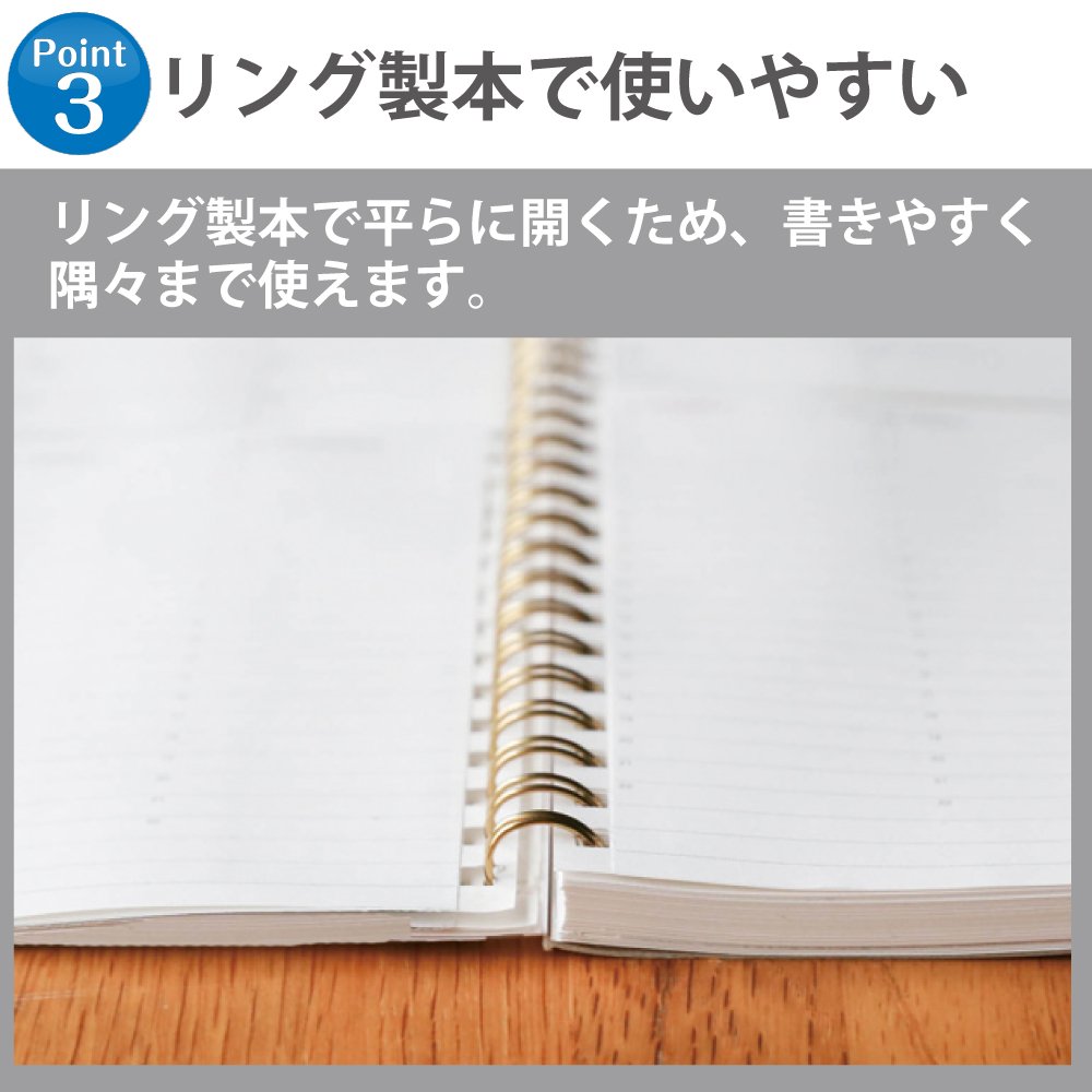 ● Because it is a ring binding, it can be opened flat, making it easier to read and easy to write to every corner.