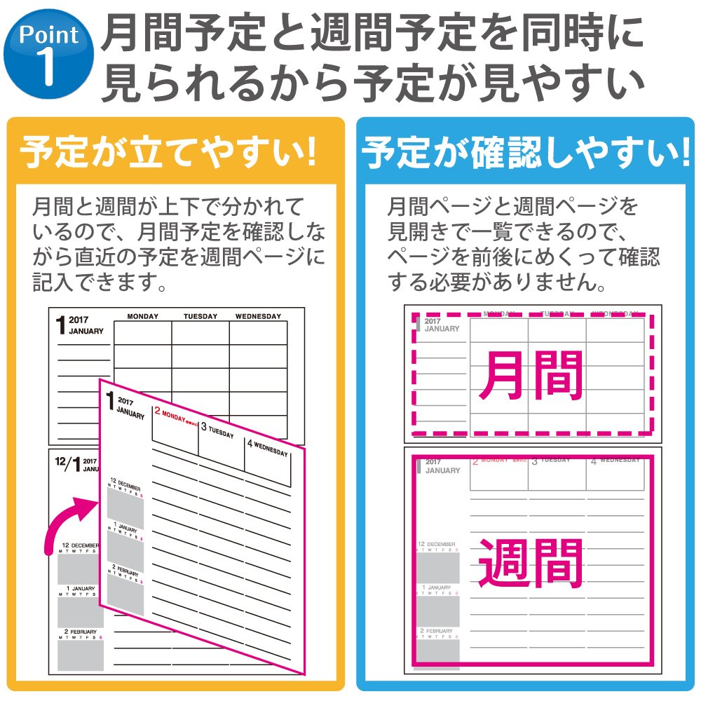 ● Because you can see both the weekly schedule and the monthly schedule by spreading, you can check the schedule without moving the page.
