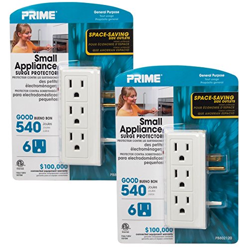 - (2) Small Appliance Surge Protectors By Prime, White, Model PB802120, New In Retail Packaging