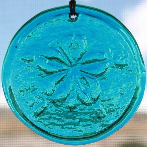 Window Suncatcher Sand Dollar in Light Blue Hanging Glass Suncatcher - 3.25" in Dia. made from recycled glass