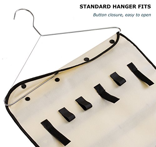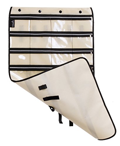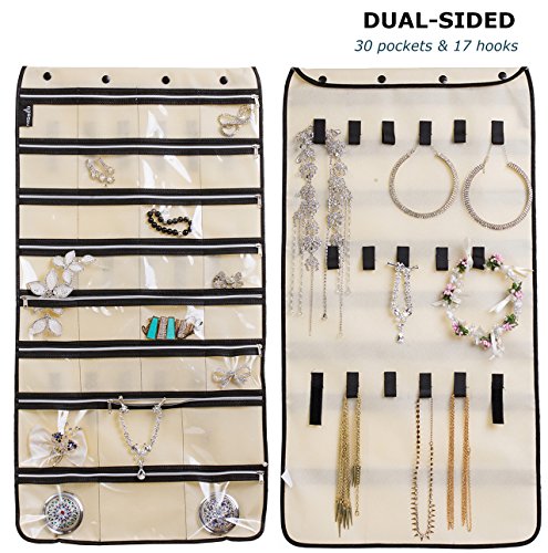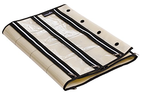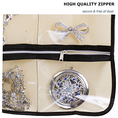 Misslo Zippered Jewelry Organizer Hanging For Travel Home Storage 30 Zippered Pockets 17 Loops, Beige