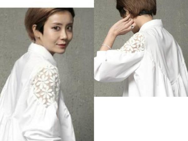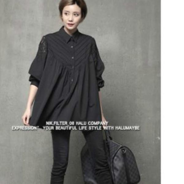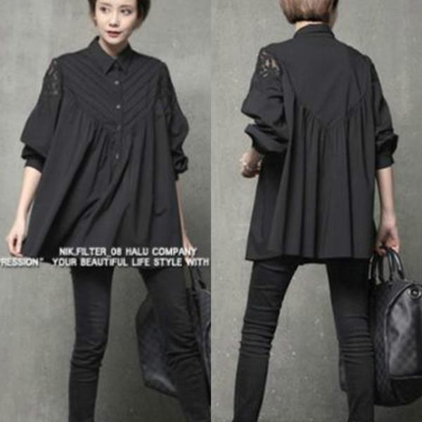 個性的 シースルーレース長袖 Aラインシャツブラウス ホワイト