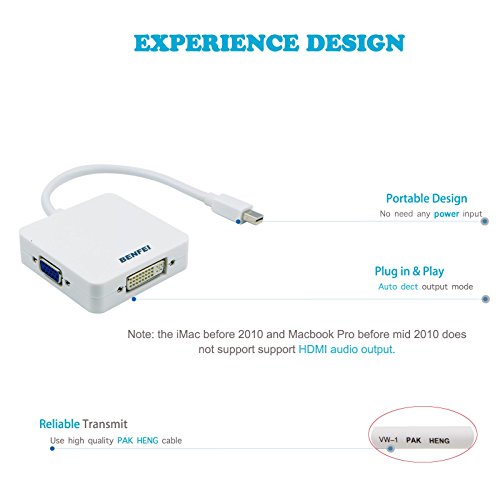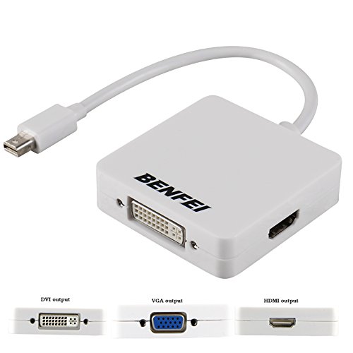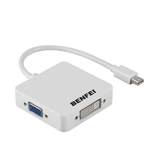 Mini DP(Thunderbolt) to HDMI DVI VGA Adapter, Benfei Mini Displayport(Display Port) to HDMI DVI VGA Converter for MacBook, iMac(LG51) Surface Pro Dell Surface Pro(1 Year Warranty)
