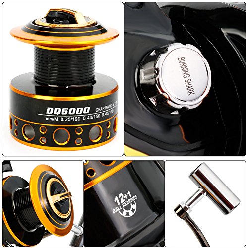 Burning Shark Fishing Reel 12+1 Ball Bearings Spinning Fishing Reel With Interchangeable Collapsible Handle Saltwater/ Freshwater Fishing Spinning Reel