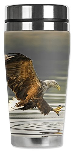 Mugzie 955-MAX "Fishing Eagle" Stainless Steel Travel Mug with Insulated Wetsuit Cover, 20 oz, Black