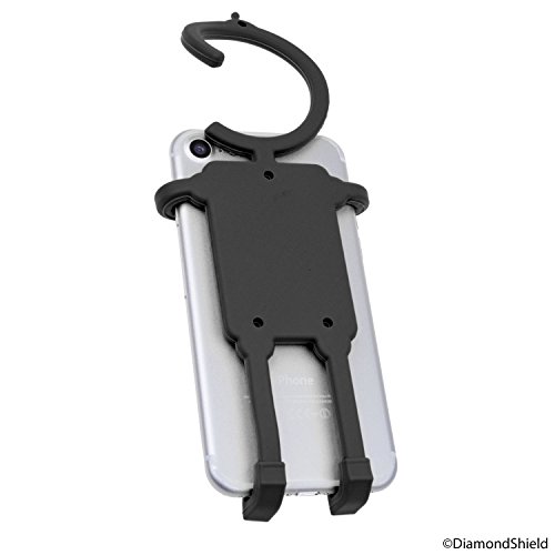 The silicone covered metal body allows you to bend it any way you want. This not only allows you to hang your phone, you can also fold the hanger/head backwards to create a desktop stand for your phone.