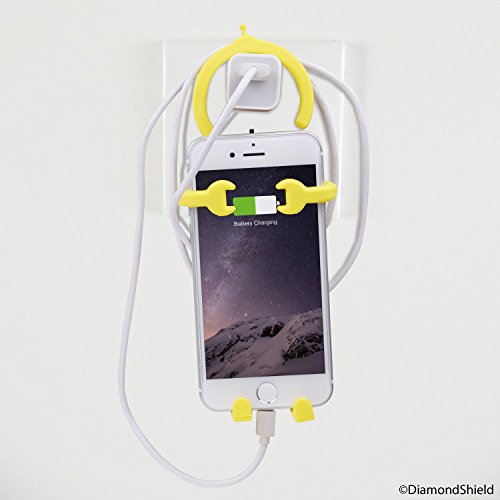 If the cable of your phone charger is too short to place your phone anywhere near the wall socket, you can hang it onto the wall charger itself.