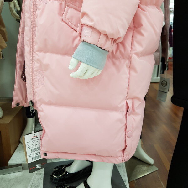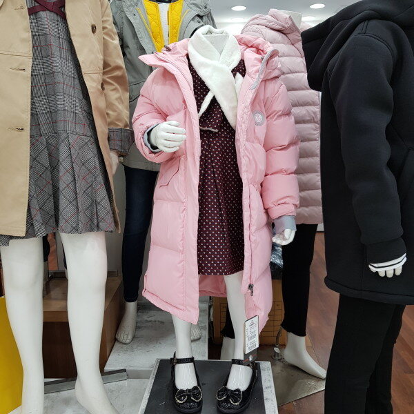 리틀밥독 다운롱점퍼입니다 사이즈정사이즈며 마네킹 110입었어요 통통한 친구는 한사이즈 크게주문해주세요