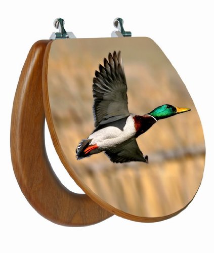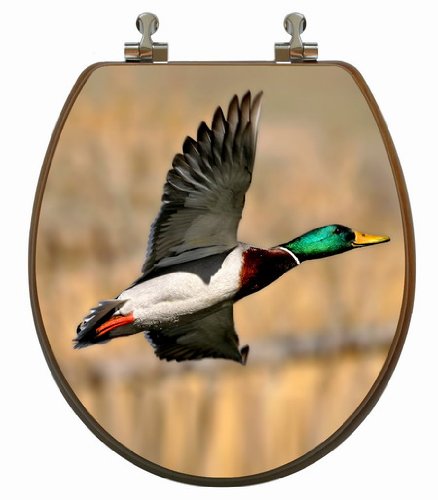 -. Brand : Topseat -. Color : Decorative / Novelty -. EAN : 0848726000368 -. Feature : Life like 3D Upland image of a Mallard Duck in flight / Exceptional oak finish on edges, under lid and ring of the seat brings natural beauty to your bathroom / Sturdy and stylish chromed metal hinges match most bathroom fixtures / Exceptional oak finish brings natural beauty to your bath with no splitting or cracking / Fits round toilet bowls - See diagram -. Label : TOPSEAT -. Manufacturer : TOPSEAT -. Model : 3DCPBRD1 -. MPN : 3DCPBRD1 -. NumberOfItems : 1 -. PackageQuantity : 1 -. PartNumber : 3DCPBRD1 -. ProductGroup : Home Improvement -. ProductTypeName : PLUMBING_FIXTURE -. Publisher : TOPSEAT -. Studio : TOPSEAT -. Title : TOPSEAT 3D Upland Series Round Toilet Seat w/ Chromed Metal Hinges, Wood, Mallard Duck -. UPC : 848726000368