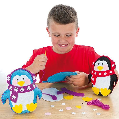 - Feature : colorful felt penguin cushions that are ideal for introducing children to sewing. / Each kit includes felt penguin shapes, self-adhesive felt pieces, plastic needle, / yarn, stuffing and instructions.Size approx. 8.3in. / 2 assorted. Age 5+. / Delivered within 9 working days