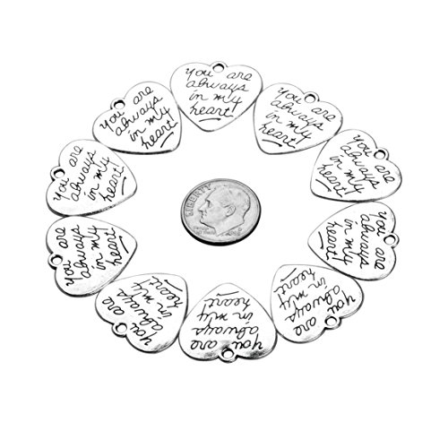 20 Pieces You are Always in My Heart Lucky Charms Findings for Jewelry Pendant Necklace Making 22 X 20mm