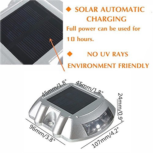 - ★NOTE: When the first time use, It has to be charged in sufficient sunlight for 12 hours , which will make the product more durable. Solar energy is an unlimited, free resource available daily. Utilizing a poly-crystalline solar panel, this road studs can be charged during the day for night use while eliminating the need to re-purchase new batterie.If there any issue about this product, please feel free to contact us first, we will give the best solution in the first time.